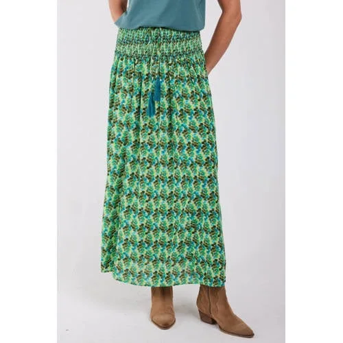 Deze groene Didi Skirt Magic rok is een fijne basis voor je garderobe als je houdt van vrouwelijk en relaxed. De A-lijn valt soepel om je benen en de midi lengte zorgt voor een moderne look. De grafische print geeft net wat extra karakter, zonder te druk te worden, zodat de rok zowel casual als gekleder te dragen is.Comfortabele pasvorm met speelse details Midi rok met A-lijn model voor een sierlijke, zwierige valling Gemaakt van rayon, een zachte stof die prettig aanvoelt op de huid Elastische tailleband met tunnelkoord voor een comfortabele pasvorm Smockwerk in de taille zorgt voor extra rek en een mooie aansluiting Grafische print in groentinten voor een eigentijdse uitstraling Zonder zakken voor een glad silhouet rondom de heupenEen rok voor veel momentenDeze midi rok is geschikt voor allerlei gelegenheden. Combineer hem met een eenvoudig T-shirt en sneakers voor een ontspannen dag, of kies een blouse en sandaaltjes voor een meer aangeklede look. De middelhoge lengte maakt de rok passend in verschillende seizoenen, met blote benen of met een panty.Didi: stijl met een ontspannen gevoelDidi staat bekend om kleding die prettig draagt en een moderne, vrouwelijke uitstraling heeft. De ontwerpen hebben vaak speelse details en zachte materialen, zodat je je de hele dag op je gemak voelt. Met deze rok haal je een item in huis dat past bij die herkenbare, toegankelijke stijl.Een veelzijdige rok die je makkelijk pakt voor alledaagse dagen en nettere momenten.