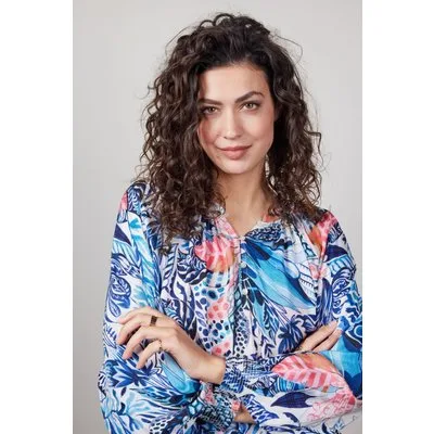 DIDI Blouse Lima In Offwhite With Azur Fusion Print