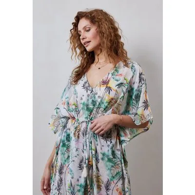 DIDI Kaftan Long In Offwhite With Palm Festival Print