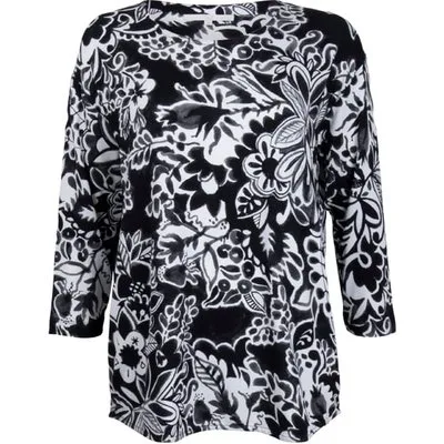DIDI Loose Tee Crew 3/4 Sleeves, Print Black With Offwhite...