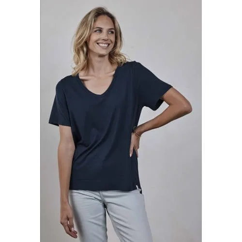 dit T-shirt van Didi heeft korte rechte mouwen en een ronde hals. het is gemaakt van viscose met wat elastaan, je draagt het makkelijk en het zit soepel voor elke dag