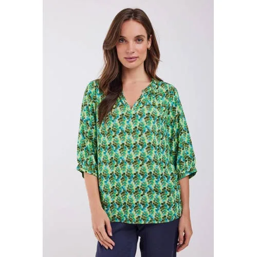 Breng kleur en karakter in je garderobe met de Didi blouse Salina. Deze top voor dames heeft een grafische print die meteen in het oog springt en toch makkelijk te combineren is met je favoriete basics. De soepele stof van 100% rayon valt mooi langs het lichaam en voelt zacht aan op de huid. De V-hals en driekwart mouwen geven een open, luchtige uitstraling die het hele jaar door passend is.Grafische blouse met elegante details Gemaakt van 100% rayon, een gladde en soepel vallende stof Grafische print voor een moderne, speelse look V-hals die de halslijn subtiel accentueert Driekwart rechte mouwen voor een lichte en comfortabele dekking Zonder zakken voor een rustige, gestroomlijnde voorkantMooi voor werk en vrije tijdDeze blouse is geschikt voor verschillende momenten op de dag. Combineer Salina met een nette broek voor een verzorgde werklook, of draag de top op een jeans voor een meer ontspannen outfit. De driekwart mouwen maken deze blouse ideaal voor zowel binnen als buiten, van voorjaar tot najaar.Didi: eigentijdse mode met aandachtDidi staat bekend om vrouwvriendelijke pasvormen en doordachte prints. De ontwerpen zijn gemaakt om makkelijk in je bestaande kledingkast te passen en toch net even anders te zijn. Met deze blouse kies je voor herkenbare Didi-stijl, met aandacht voor draagbaarheid en detail.Een veelzijdige top die je eenvoudig uit de kast pakt voor alledaagse momenten en iets meer geklede gelegenheden.