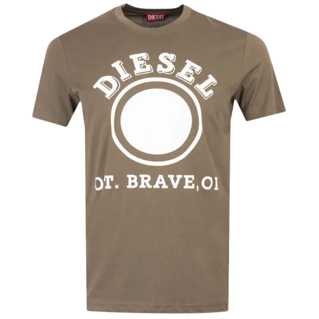 Groen T-shirt met korte mouwen, Diesel Varsity-merk, T-shirt met ronde hals, normale pasvorm, maat valt normaal, 100% katoen, groen T-shirt