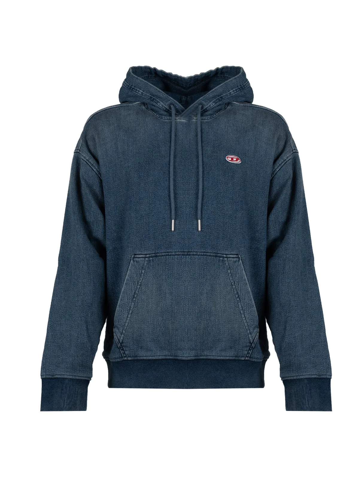 Het merkdetail op de voorkant trekt de aandacht en voegt elegantie toe, benadrukt het unieke karakter van de hoodie en maakt het de ideale keuze voor mensen die van stijl en kwaliteit houden. De zichtbare naden zijn niet alleen esthetisch aantrekkelijk, maar getuigen ook van solide vakmanschap, waardoor de hoodie duurzaam is en perfect past. Een hoodie met capuchon is niet alleen een modieuze keuze, maar ook een praktisch kledingstuk dat in elke situatie comfort en bescherming tegen de kou biedt. De denimtextuur geeft de hoodie een onmiskenbare stijl die klassiek en modern combineert, waardoor hij zeer veelzijdig is voor dagelijks gebruik. De kangoeroezak is niet alleen een functioneel accessoire, maar ook een stijlvol element waarin je kleine spullen kunt opbergen of je handen warm kunt houden op koelere dagen. Elastische manchetten bij de polsen garanderen een perfecte pasvorm en comfort, voorkomen dat de kou binnendringt en geven de hoodie een sportief karakter.