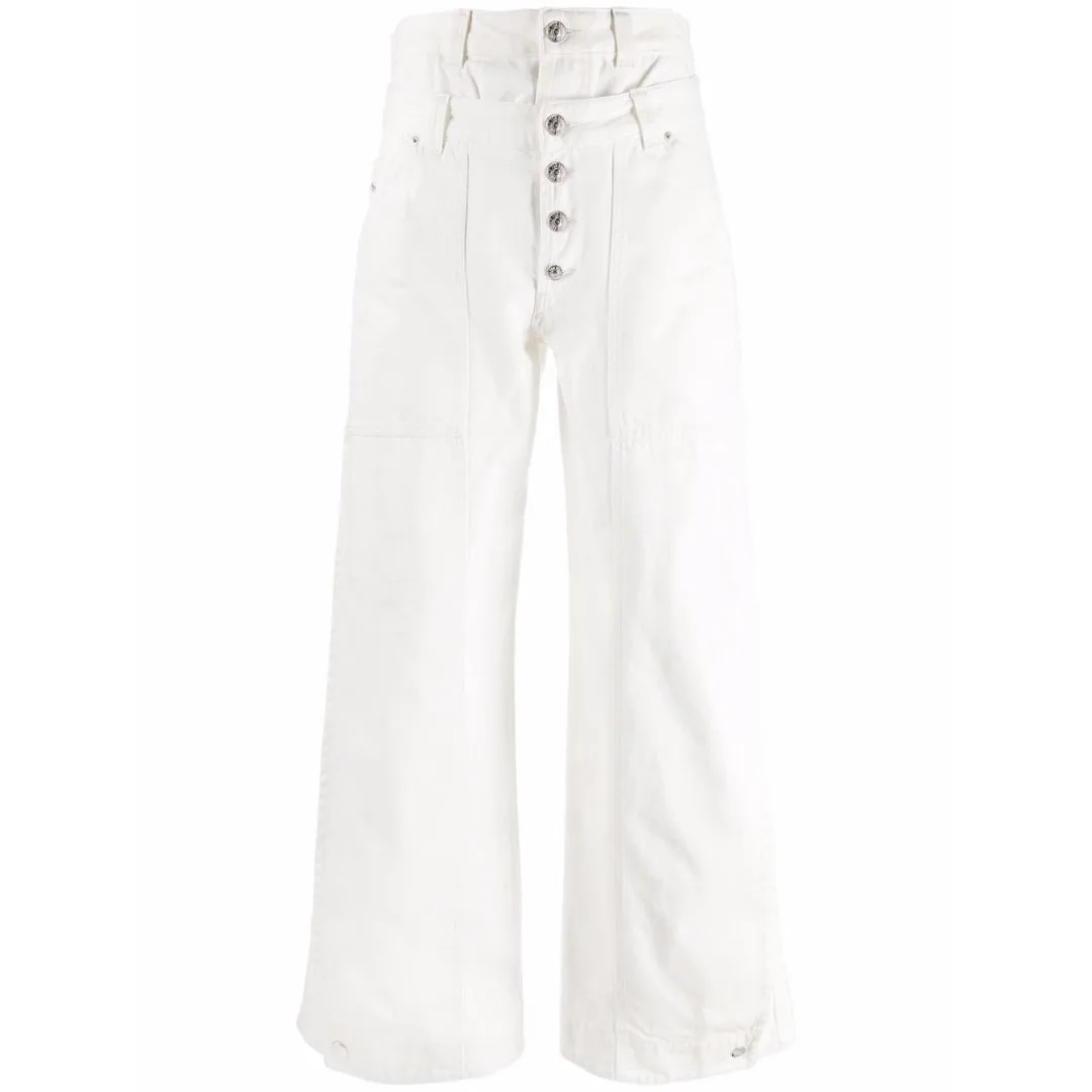 Diesel witte jeans, wijde pijpen, normale taille, 100% katoen, witte denim, knoopsluiting, witte spijkerbroek