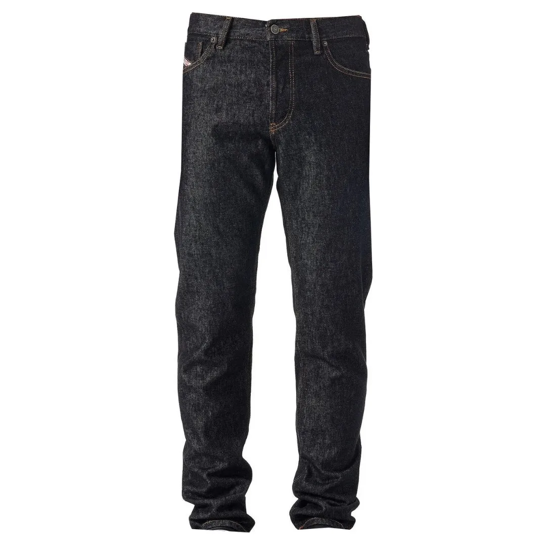 Diesel zwarte denim broek, knoopgulp, 100% katoen, donker denim, rechte pijpen, Diesel merkbadge