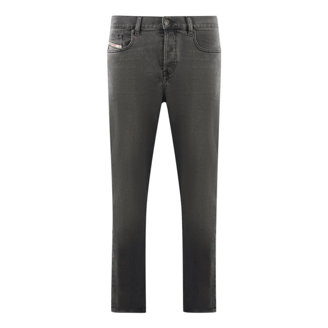 Dieselgrijze jeans, normale taille, taps toelopende pijpen, knoopsluiting, 100% katoen, donkere denim, gestikte badge, grijze denim