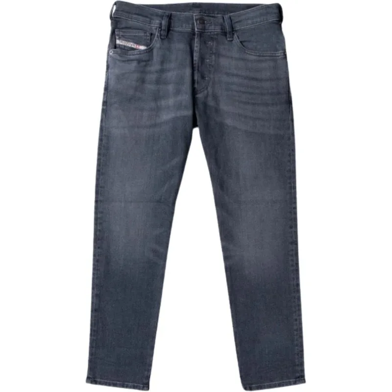 Dieselgrijze denimbroek, normale taille, taps toelopende pijpen, knoopgulp, 99% katoen, 1% elastaan __stretchdenim, gemaakt in Mauritius, grijs denim, diesellogo
