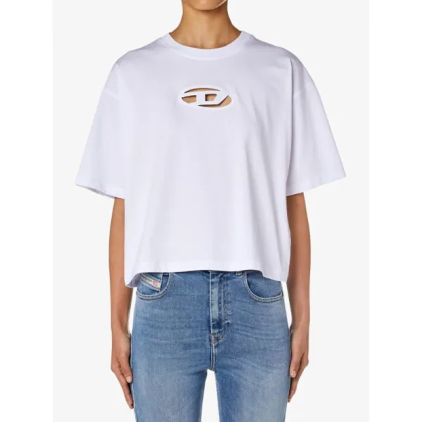 Het Diesel T-buxt-crop-od Shirt in de kleur wit heeft een boxy oversized cropped pasvorm. Het shirt heeft een lasercut logo aan de voorkant. Wij adviseren een maat kleiner als je dit minder oversized wilt dragen.