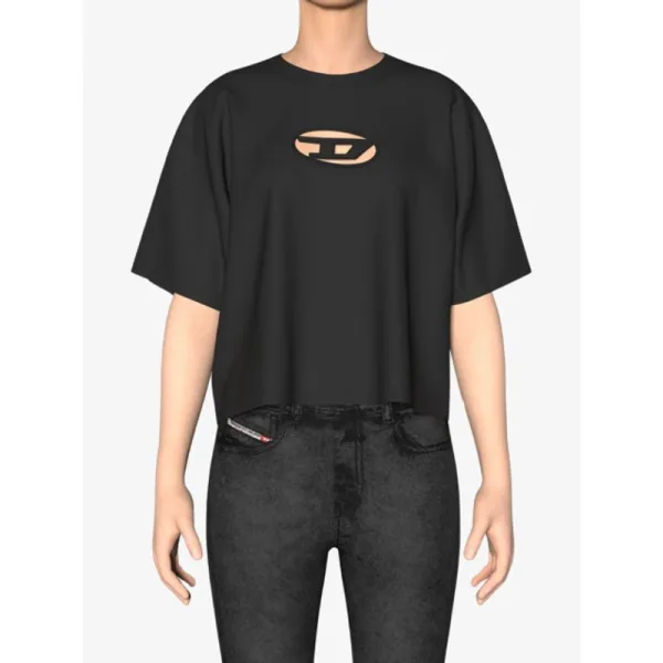 Het Diesel T-buxt-crop-od Shirt in de kleur zwart heeft een boxy oversized cropped pasvorm. Het shirt heeft een lasercut logo aan de voorkant. Wij adviseren een maat kleiner als je dit minder oversized wilt dragen.