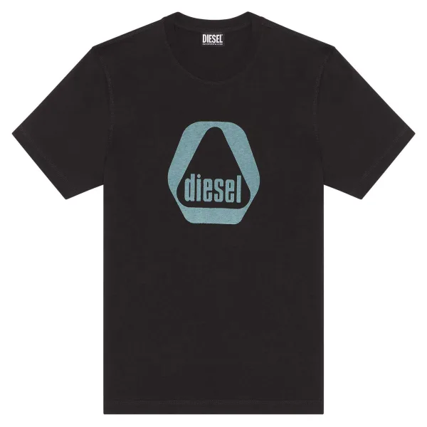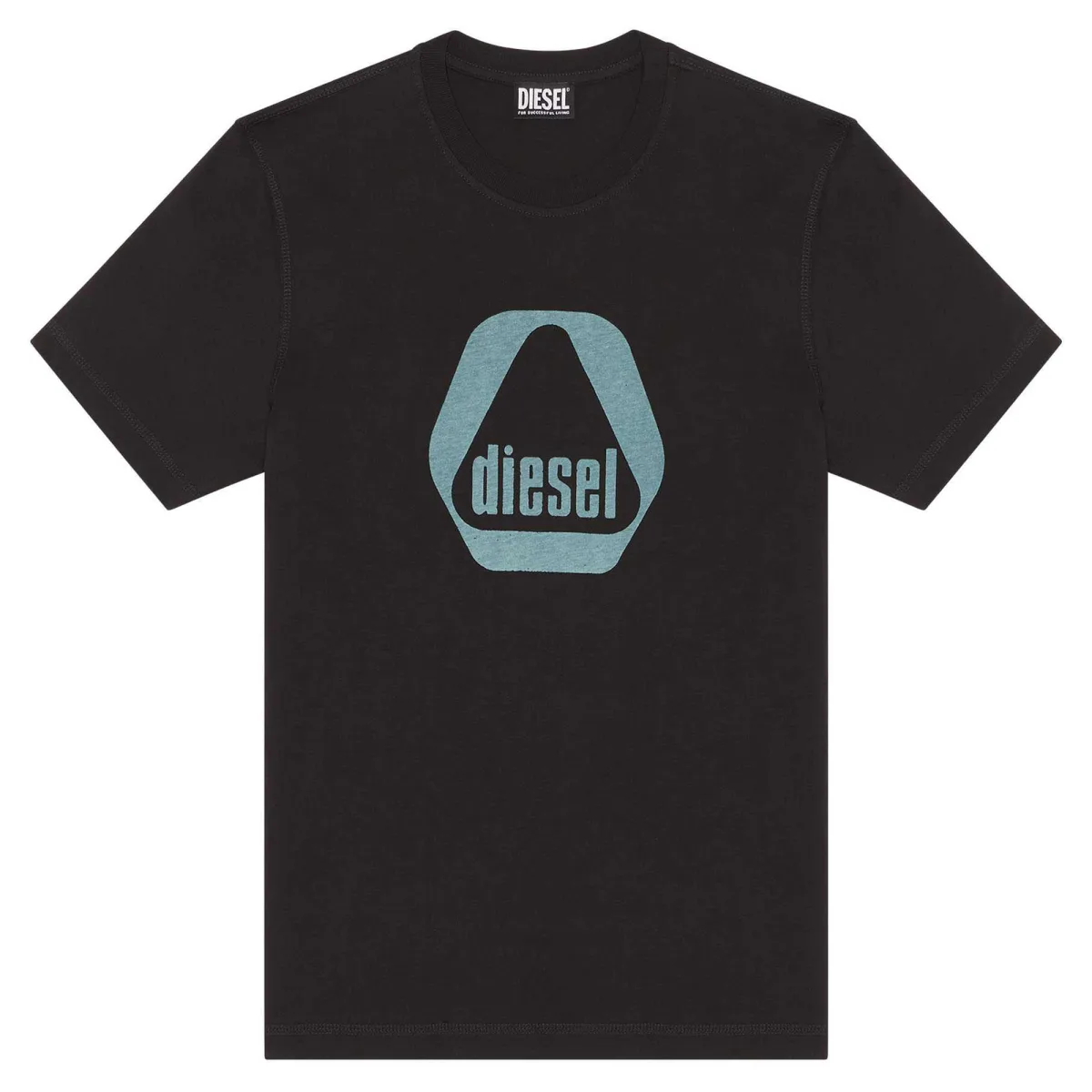 Zwart T-shirt met korte mouwen, Diesel-branding, T-shirt met ronde hals, normale pasvorm, maat valt normaal. 100% katoen, zwart T-shirt