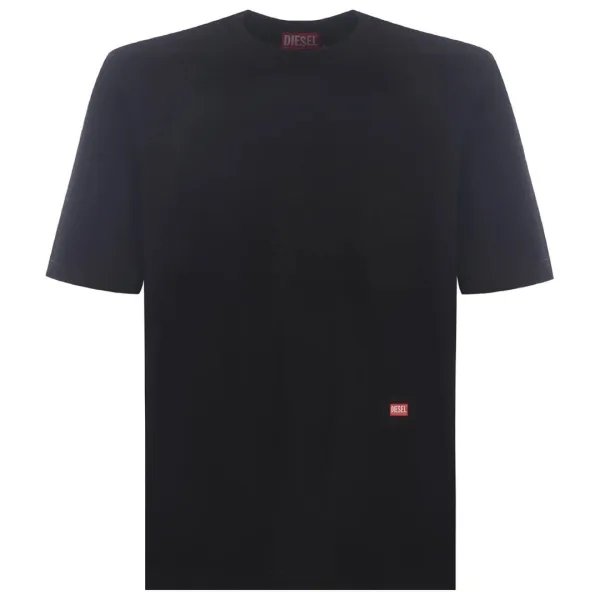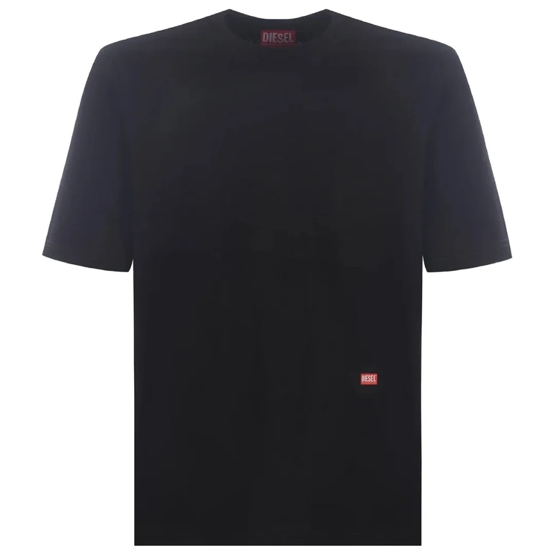 Zwart T-shirt met korte mouwen, Diesel-merklogo, T-shirt met ronde hals, normale pasvorm, maat valt normaal. 100% katoen, zwart T-shirt
