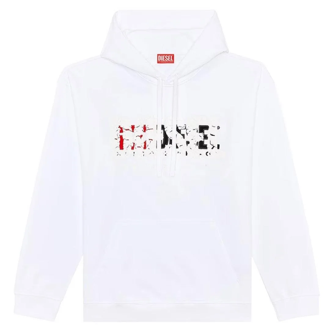Diesel Heren Dubbel Vernietigd Logo Hoodie Wit