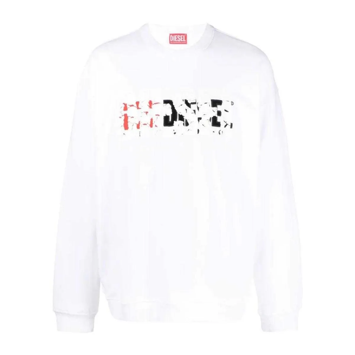 Diesel Heren Dubbel Vernietigd Logo Sweatshirt (Wit)