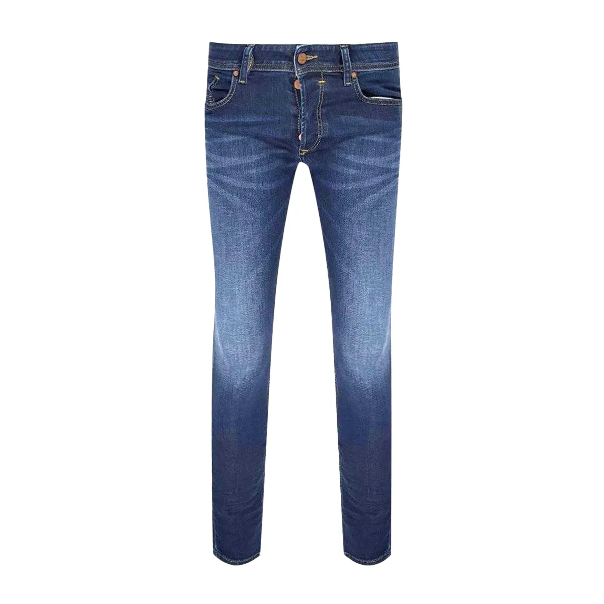 85% Katoen, 13% Polyester, 2% Elastan.. Stof: Rekken. Ontwerp: Vervaagd, Effen. Zakken: 2 zijzakken, 2 achterzakken, 1 muntzakje. Sluiting: Knoop, Ritsgat. Riemlussen, Taps toelopende pijpen. Geschikt voor: Mager.