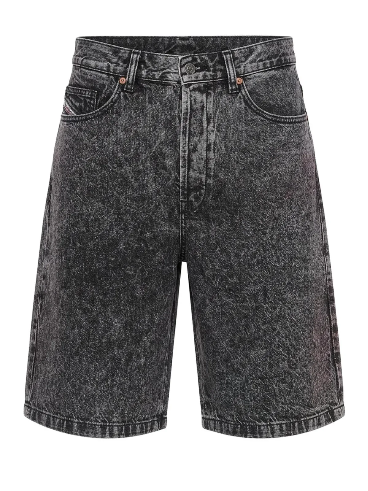 Materiaal: Denim; Motief: Mélange; Wassing: Acid washed; Lengte: Knielengte; Pasvorm: Loosefit