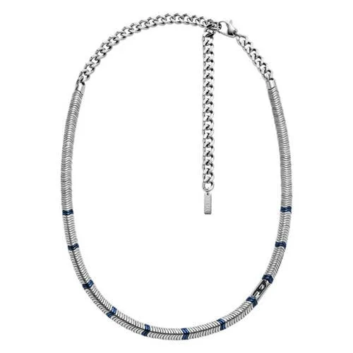 De hematiet kralenketting van Diesel heeft een op de jaren 90 geïnspireerd ontwerp. Deze ketting is vervaardigd van zilverkleurigig en blauw roestvrij staal en hematiet en heeft een karabijnsluiting. Dit item is ideaal voor iedereen die op zoek is naar een modern accessoire met kralen.
