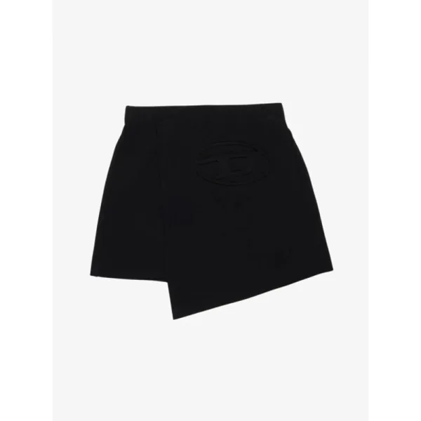 De Diesel Junior Gilsy Rok in de kleur Zwart heeft een asymmetrische overslag look met toon op toon logo. De rok heeft een elastieke tailleband en is te combineren met het bijpassende t-shirt.