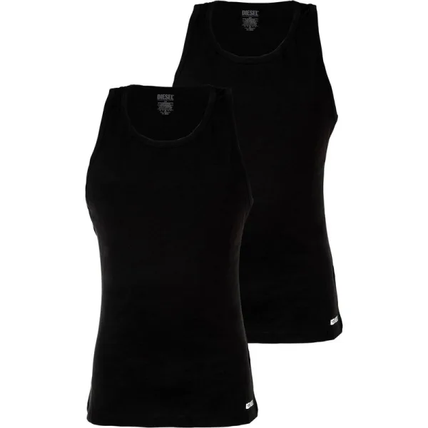Twee effen tanktops voor heren van het merk DIESEL. Mouwloze shirts met ronde hals, gemaakt van zachte single jersey kwaliteit van puur katoen.