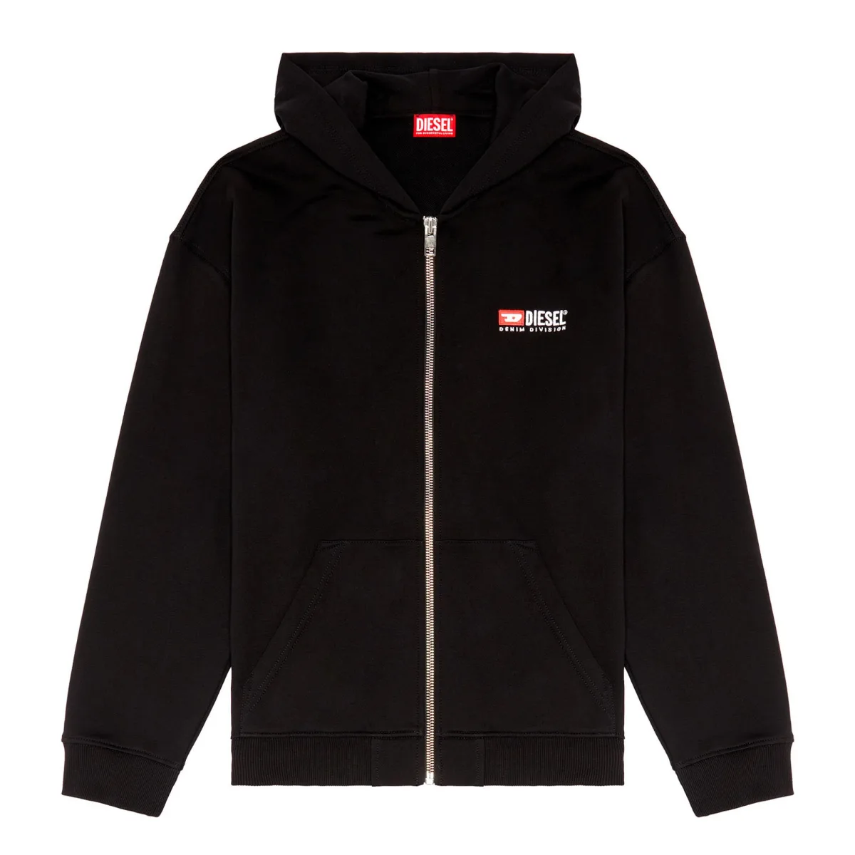 Comfortabele sweatjacket voor mannen van het merk DIESEL. Eenvoudig model met capuchon en rits. Comfortabel om te dragen dankzij de pure biologische katoenen stof.