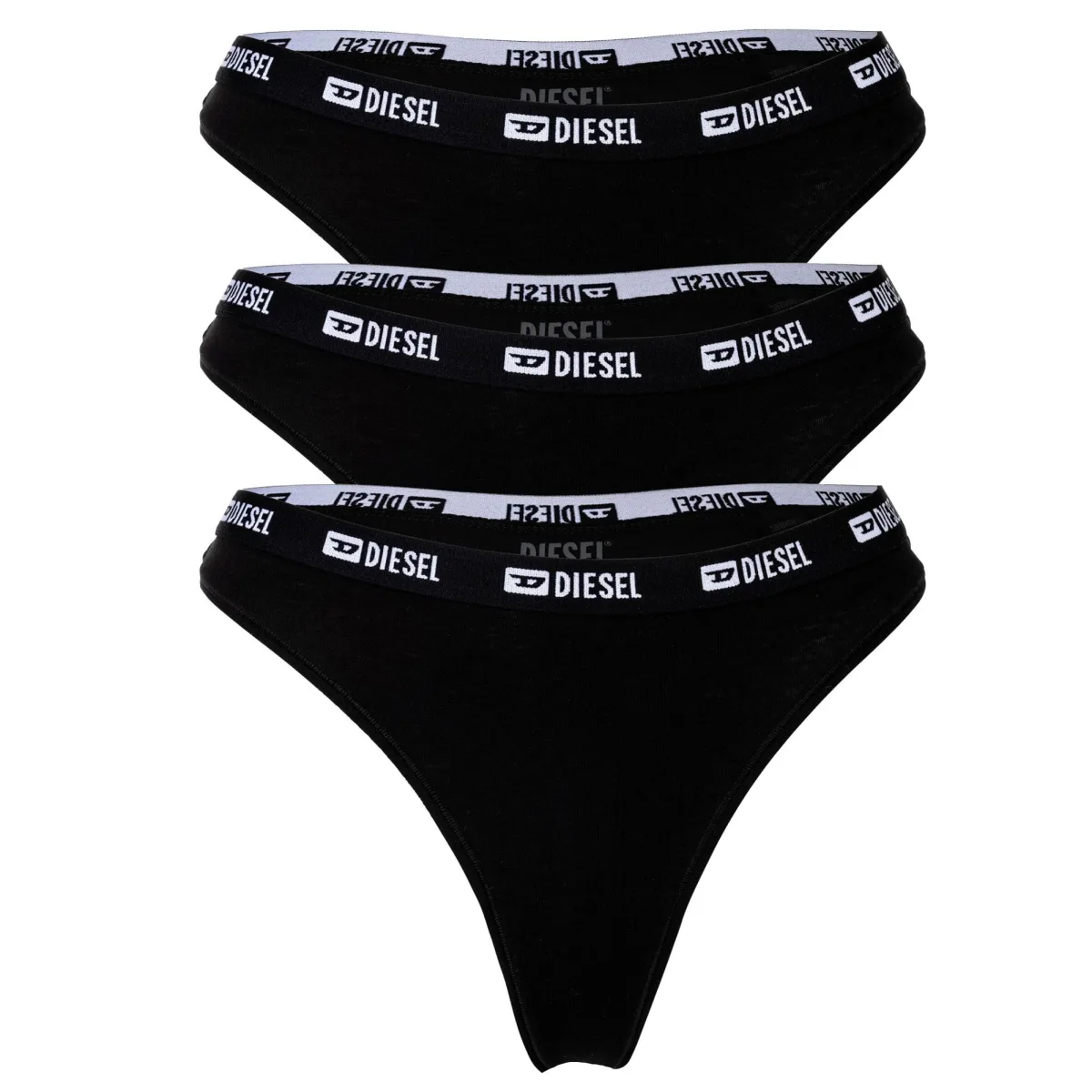 Drie eentonige stringtanga's voor dames van DIESEL. Zachte stretchkatoen, DIESEL-logo op de stretchelastiek tailleband, perfecte pasvorm voor optimaal comfort.