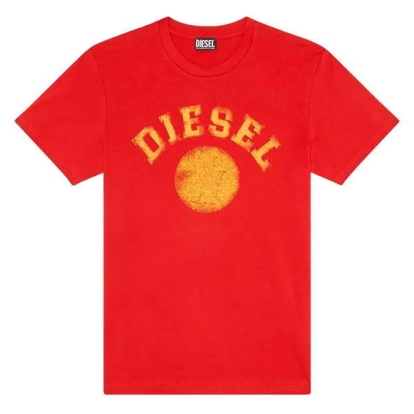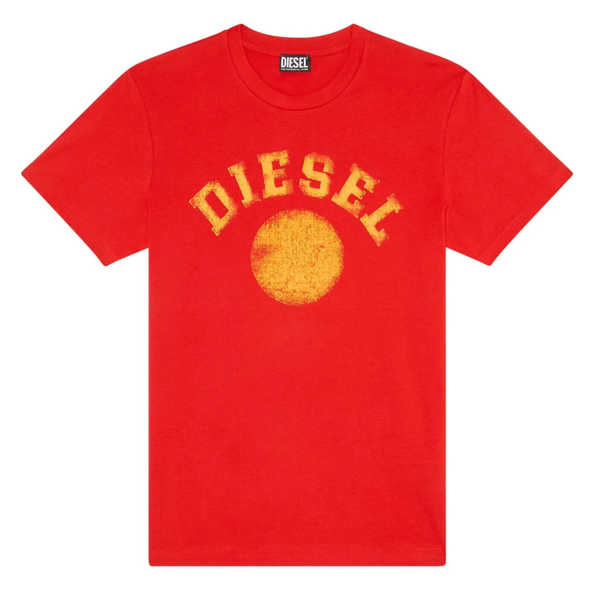 Rood T-shirt met korte mouwen, Diesel-branding, T-shirt met ronde hals, normale pasvorm, maat valt normaal, 100% katoen, rood T-shirt
