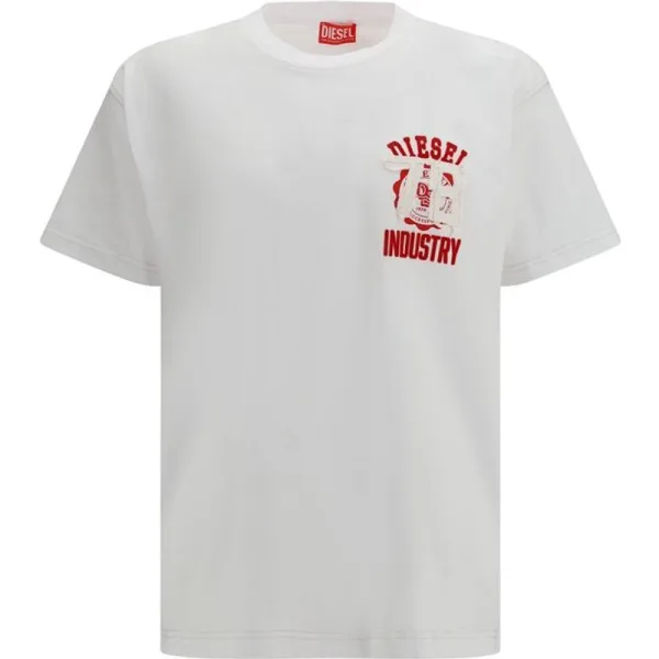 Het T-shirt met korte mouwen en ronde hals van Diesel, met een logo patch aan de voorkant en een onderliggende print, plus een groot afdruk op de achterkant, levert een gedurfde stedelijke uitstraling. De essentiële constructie verbetert de hedendaagse silhouette, ontworpen voor dagelijks comfort. De logo patch aan de voorkant benadrukt de onderscheidende identiteit van Diesel, terwijl de oversized print op de achterkant het sterke grafische karakter versterkt. Dit T-shirt van Diesel is een zelfverzekerde en expressieve aanvulling op een moderne garderobe. Seizoen: SS26 Pasvorm: Regular Samenstelling: 100% Katoen