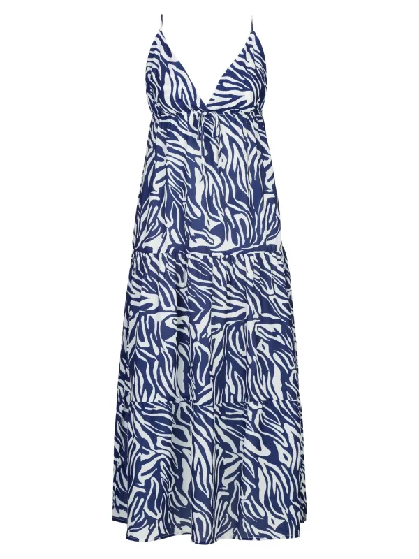 Design: Met band/snoer, Diepe snit/decolleté; Halstype: V-hals; Details: Volant; Extra's: Verstelbare bandjes, All-over patroon; Lengte: Lang/maxi; Pasvorm: Normale pasvorm; Armlengte: Mouwloos