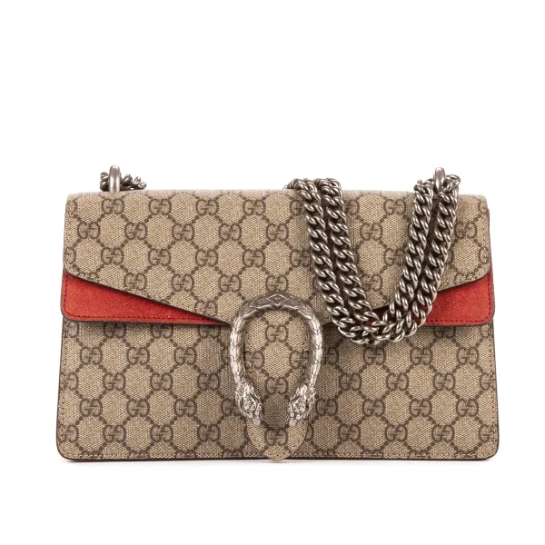 Gucci Tassen Dionysus Small Schoudertas in de Beige/Rood Gecoat canvas in de Silver hardware. Het product is in In Uitstekende Staat (A). Afmetingen: 27x16x6 cm Inclusief accessoires: None Opmerkingen over de binnenkant: Verkleurd Suède Opmerkingen over de hardware: Krassen BrandCo Paris vindt zeldzame artikelen in de beste staat voor ongelooflijke prijzen. Het is de moeite waard om geduldig te zijn! Koop met vertrouwen: alle artikelen van BrandCo Paris worden zorgvuldig geselecteerd en geverifieerd door ons team van experts. Alle artikelen worden geleverd met een certificaat van echtheid en verpakt door BrandCo Paris. Classificatietabel voor de conditie van het artikel: N (als nieuw) AA (perfecte staat) A (uitstekende staat) AB (zeer goede staat) B (goede/redelijke staat)