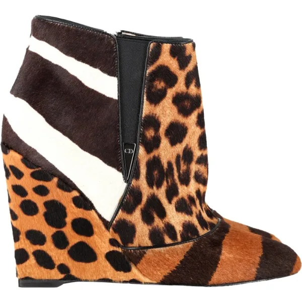 Dior Delta Dierenprint Wedge Enkelboots in Bruin Ponyhaar