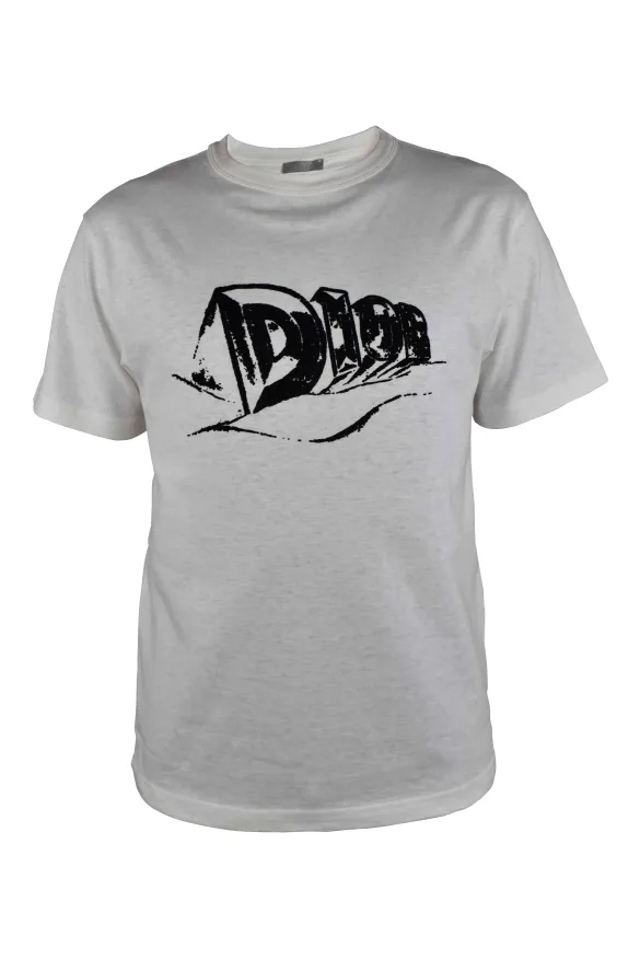 Wit katoenen T-shirt Dior.Zwart fluwelen logo in het midden.Ronde hals.Korte mouwen.Made in Italy.