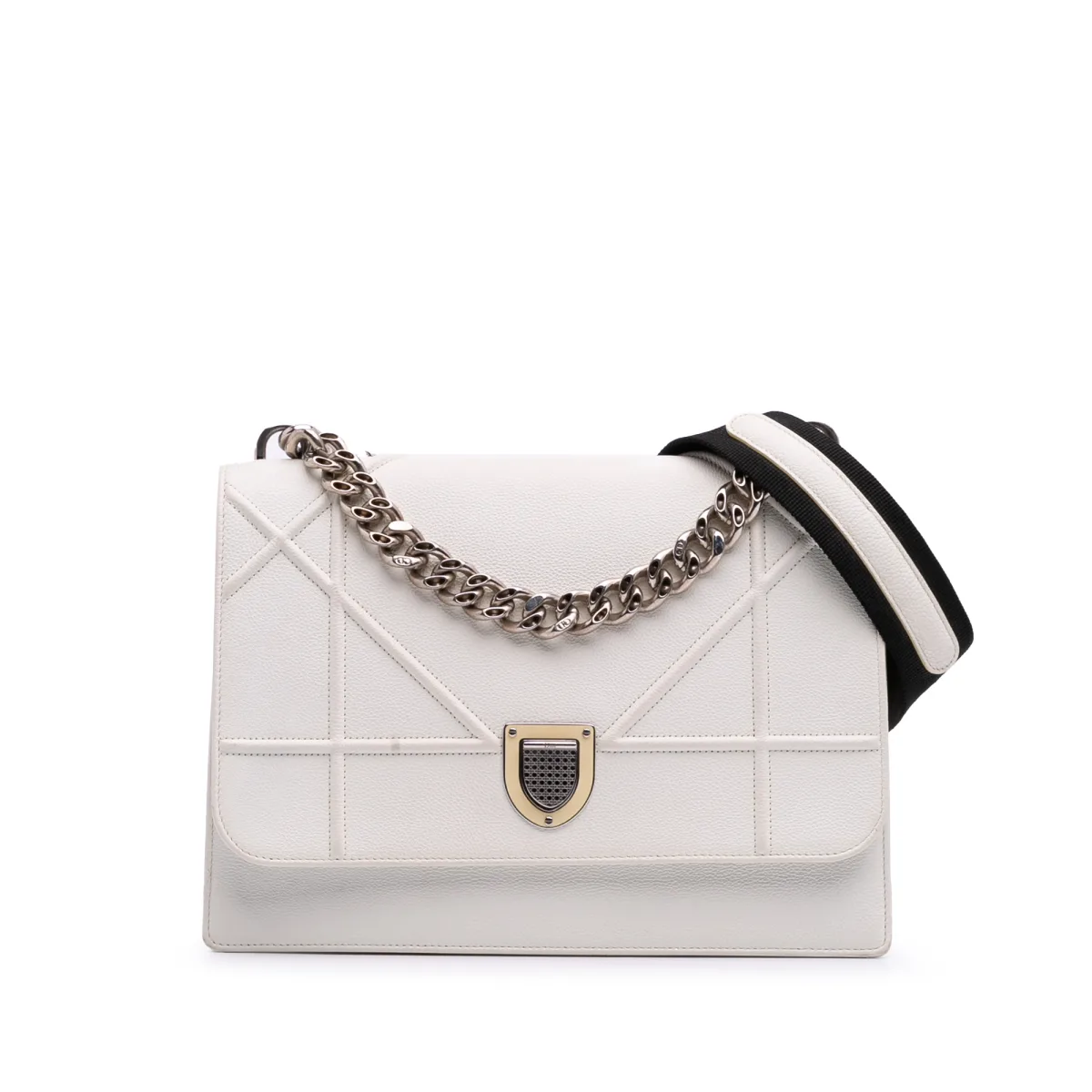Verhoog je stijl, omarm tijdloze elegantie en trek de aandacht. Deze Diorama schoudertas straalt verfijnde charme uit en biedt moeiteloze organisatie. Gemaakt van luxe wit leer, biedt deze tas duurzame, onderhoudsvriendelijke draagmogelijkheden voor dagelijks gebruik. Het iconische kettingdetail voegt een vleugje gedurfde glamour toe. Ervaar het comfort van de hele dag met de doordacht ontworpen binnenkant. Geniet van een veilige, verstelbare pasvorm met de veelzijdige schouderband. Perfect voor werk, weekends of gezellige avonden, deze schoudertas integreert moeiteloos in jouw dynamische levensstijl. Afmetingen: 21 x 27,5 x 10 cm Conditiebeoordeling: B+ Informatie over de conditie: Achterzijde buitenkant bevlekt met kleuroverdracht. Onderzijde buitenkant versleten. Onderzijde buitenkant bevlekt met andere vlekken. Slot bekrast. Hoeken buitenkant versleten. Voorkant buitenkant bevlekt met andere vlekken. Handvat buitenkant bijgespoten. Handvat buitenkant bevlekt met andere vlekken. Binnenzak bevlekt met andere vlekken. Voering binnenkant bevlekt met andere vlekken. Praktisch bevestiging bekrast. Zijrand buitenkant gebroken en gekreukt. Zijrand buitenkant bevlekt met andere vlekken. Bovenkant buitenkant bijgespoten. Bovenkant buitenkant bevlekt met kleuroverdracht. Rits bekrast.