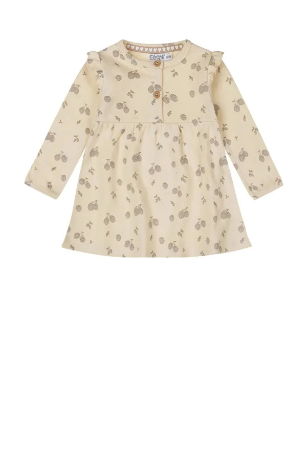 Deze Dirkje jurk heeft een ronde hals en lange mouwen. De jurk is gemaakt van 100% katoen. Met een gebreid detail en een knoopsluiting draag je deze jurk makkelijk elke dag.