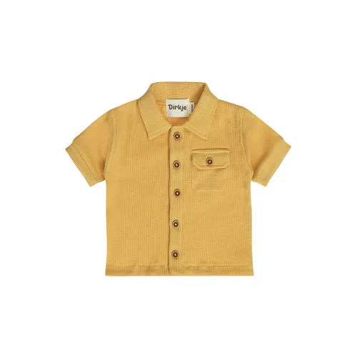 Deze okergele Dirkje polo voor jongens is een fijn basisshirt voor elke dag. De korte mouwen en klassieke polokraag geven een nette, maar toch speelse uitstraling. Door het gebruik van zacht katoen met een beetje stretch blijft de polo prettig meebewegen tijdens het spelen, kruipen en ontdekken. Ideaal voor baby, New Born, peuter en kleuter.Handige details voor elke dag Klassieke polokraag met knoopsluiting, handig bij het aan- en uittrekken Korte mouwen, geschikt voor warme dagen of onder een vest Zachte, rekbare stof van katoen met elastaan voor extra bewegingsvrijheid Effen oker kleur die makkelijk combineert met jeans, joggers of een korte broek Gebreide kwaliteit voor een verzorgde, stevige look Klein borstzakje als speels detail Wasbaar op 30 graden en geschikt voor een regulier droogprogramma Lauw strijkbaar, waardoor de polo snel weer netjes isComfortabel in de speeltuin en aan tafelDeze jongens polo past net zo goed tijdens een dag op het kinderdagverblijf als bij een familiebezoek. De stof voelt zacht op de huid en biedt genoeg ruimte om te bewegen, rennen en klimmen. De oker kleur zorgt voor een frisse, opvallende look zonder drukke prints.Dirkje: praktische kinderkleding met een fijne pasvormDirkje staat bekend om comfortabele kinderkleding die goed aansluit bij het dagelijkse leven van gezinnen. De collecties zijn afgestemd op bewegen, spelen en groeien, met materialen die fijn aanvoelen en makkelijk te verzorgen zijn. Zo heb je lange tijd plezier van deze polo in de kledingkast van je kleintje.Een toegankelijke, verzorgde keuze voor elke dag waarop gemak en comfort voorop staan.