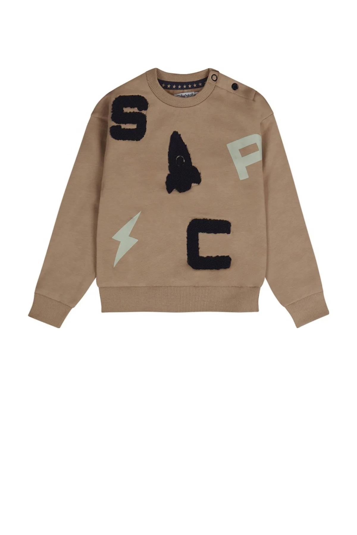 Deze sweater van Dirkje heeft een lange mouw en een ronde hals. De sweater is gemaakt van katoen met elastaan, heeft een drukknoopsluiting, een 3D applicatie en geribde boorden.