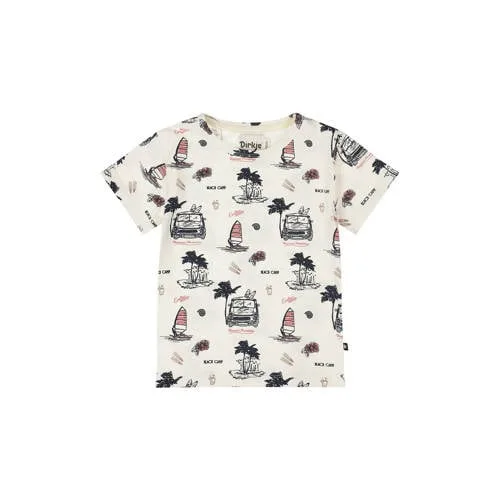Voor elke speelse dag is dit Dirkje jongens T-shirt een fijne basic met een frisse uitstraling. Het ecru shirt heeft een all-over print in zwart en roze, wat meteen een vrolijke look geeft. De ronde hals en korte mouwen maken het ideaal voor binnen en buiten, het hele jaar door. Dankzij het stretchkatoen beweegt je kind makkelijk mee tijdens kruipen, rennen en spelen.Zachte stof en praktische details Gemaakt van zacht katoen met een beetje stretch voor extra bewegingsvrijheid All-over print in ecru, zwart en roze voor een speelse, moderne look Korte mouwen, fijn voor de warmere dagen of onder een vest Ronde hals met drukknoopsluiting, handig bij het aan- en uittrekken Geschikt voor baby, new born en peuter en kleuter uit de Daily collectie Eén T-shirt per verpakking, makkelijk te combineren met broeken en shorts Onderhoudsvriendelijk: wasbaar op 30 graden en geschikt voor regulier droogprogramma Lauw strijkbaar op één punt, zodat de print mooi blijftElke dag comfortabel aankledenDit shirt past goed in de dagelijkse garderobe van je kind. Door de neutrale basis en speelse print draag je het net zo makkelijk op een jogger als op een jeans of korte broek. De soepele stof voelt prettig op de huid, ook bij de allerkleinsten.Dirkje, vertrouwd in kinderkledingDirkje staat bekend om comfortabele en doordachte kinderkleding voor de allerdagelijkse momenten. Met aandacht voor pasvorm, zachte materialen en praktische details biedt het merk kleding waar kinderen zich vrij in kunnen bewegen en waar ouders op kunnen rekenen.Een prettig T-shirt voor elke dag, dat er leuk uitziet en goed aanvoelt.