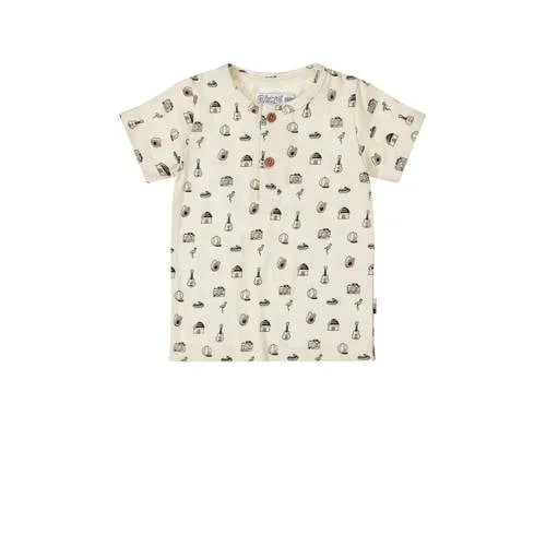 Dit T-shirt van Dirkje is uitgevoerd in ecru, zwart en bruin. Het heeft een ronde hals en korte mouwen. Gemaakt van katoen en elastaan, perfect voor dagelijks draagcomfort. Ideaal voor jongens.