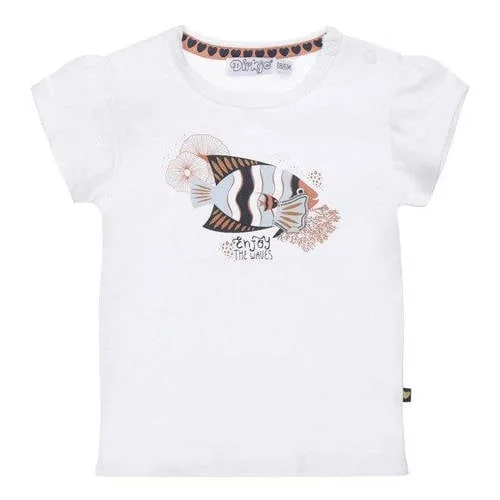 Dit T-shirt voor meisjes van Dirkje is gemaakt van stretchkatoen en heeft een printopdruk. Het model heeft een ronde hals en korte mouwen. Het T-shirt heeft een drukknoopsluiting.