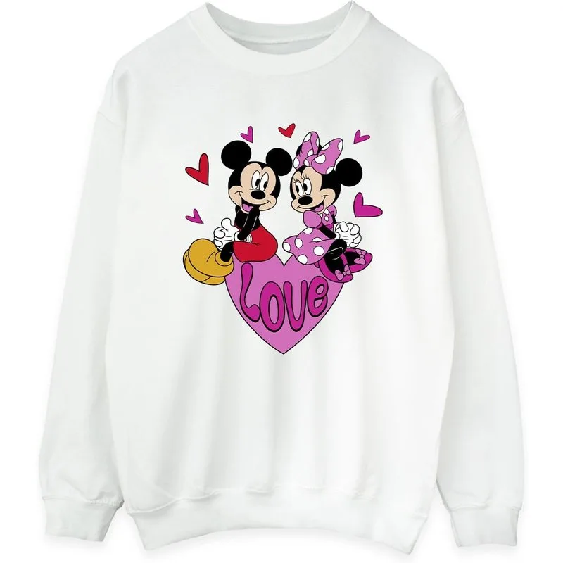 Disney DamesDames Love Hearts Mickey Minnie Mouse Sweatshirt Wit