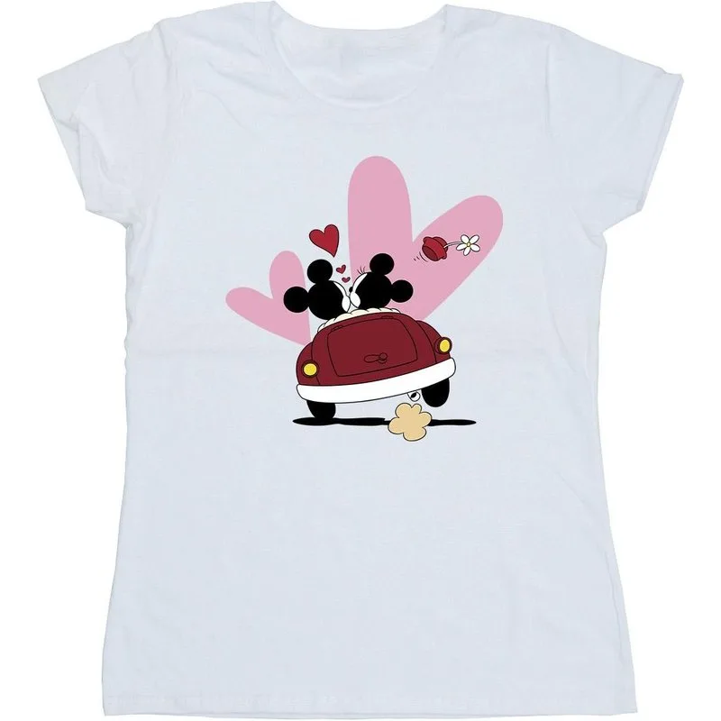 Disney Dames/Dames Mickey Mouse Car Print Katoenen T-Shirt (Wit) Prijzen