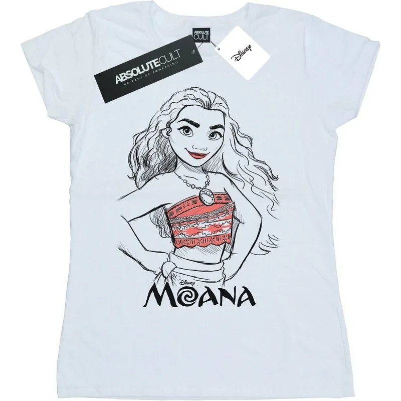 Disney Dames/Dames Moana Schets Katoenen T-Shirt (Wit) Prijzen