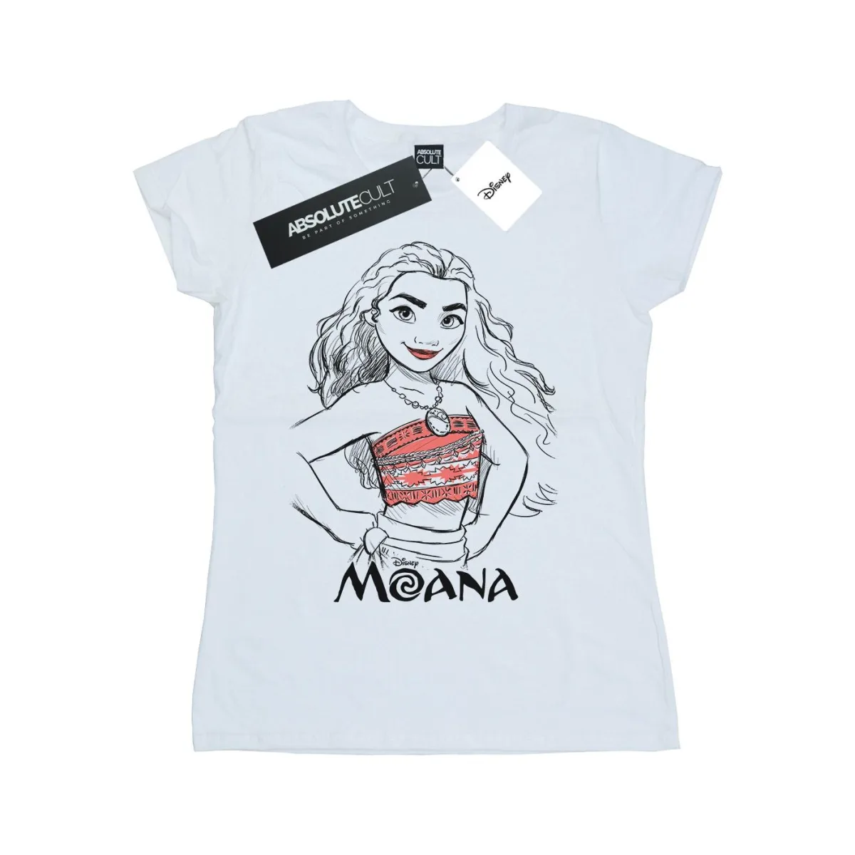 Disney Dames/Dames Moana Schets Katoenen T-Shirt (Wit) Prijzen