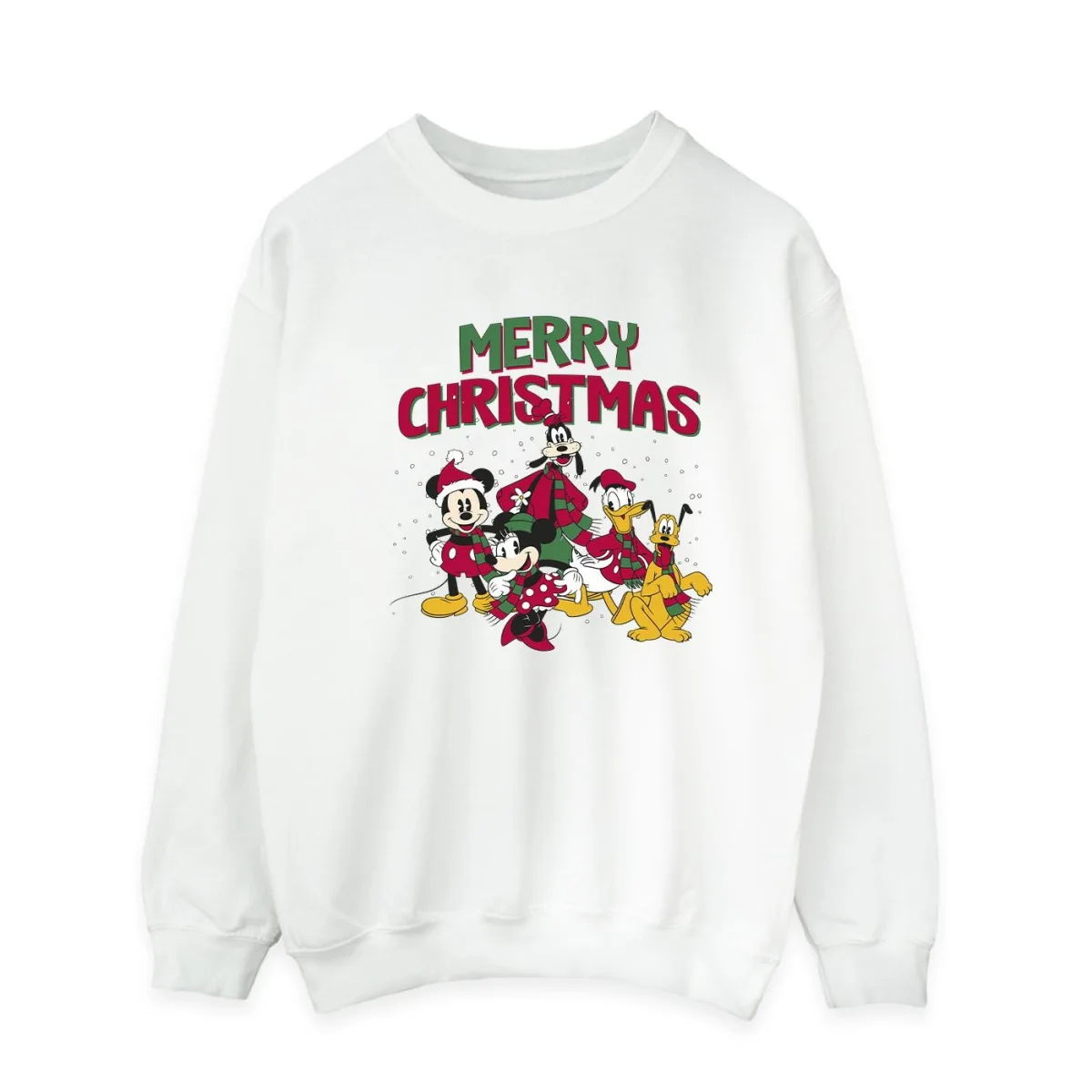 Disney Heren Mickey Mouse Vrolijk Kerstfeest Figuren Sweatshirt Wit