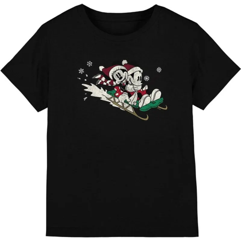 Disney Kinderen/kinderen sleeën voor kerstmis mickey & minnie mouse t-shirt Prijzen