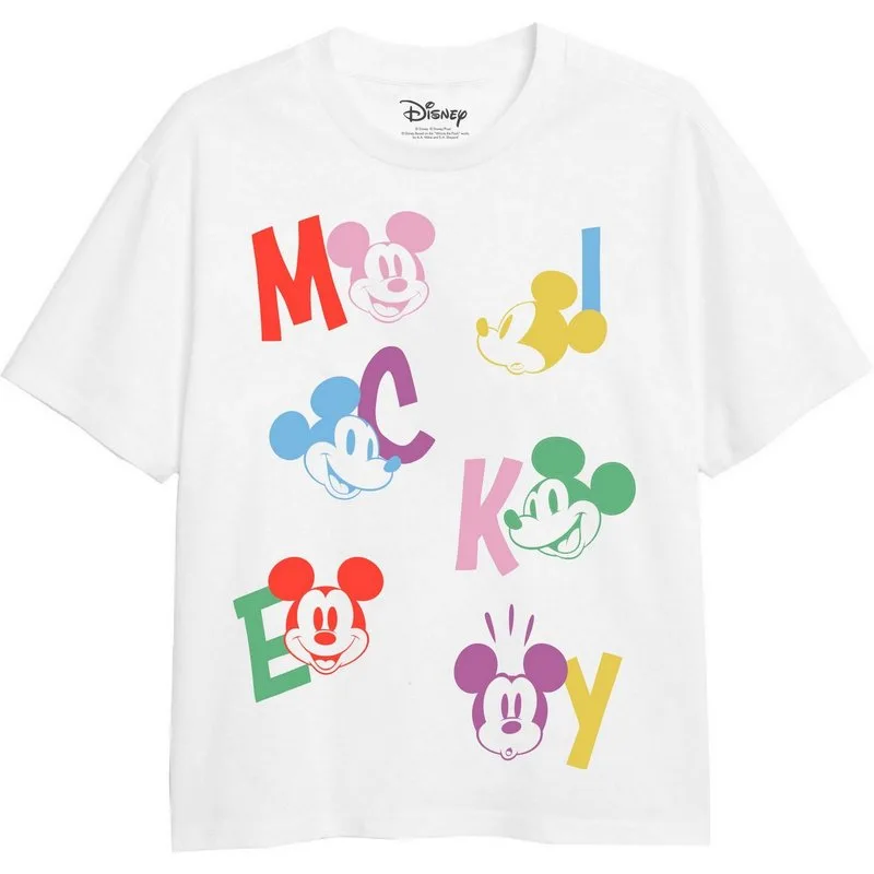100% Katoen. Ontwerp: Letter, Gedrukt, Tekst. Tekens: Mickey Mouse. Hals: Ronde Hals. Mouwtype: Korte mouwen. 100% Officieel Gelicentieerd. 165gsm.