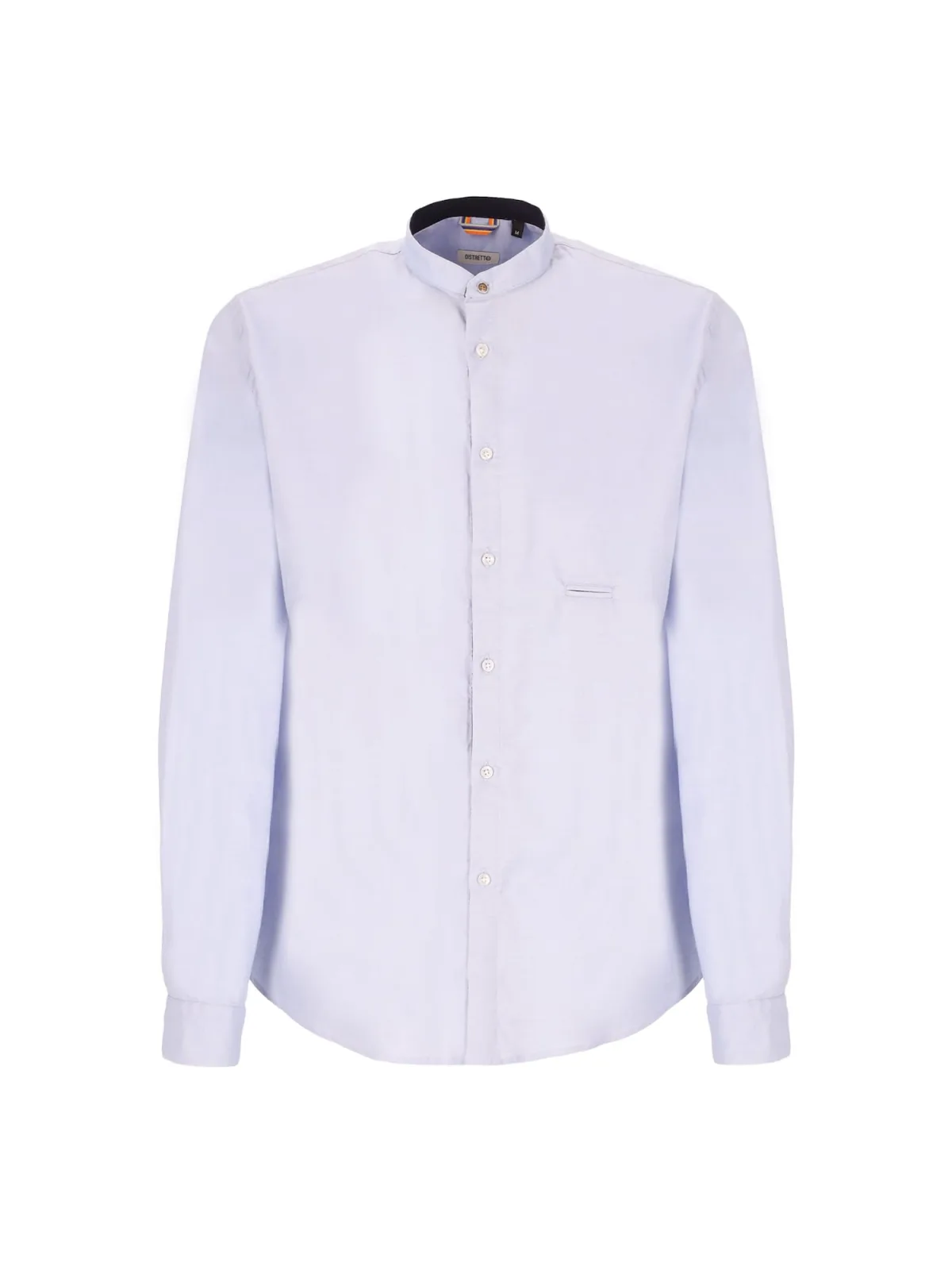 Design: Knop placket, Paspelzak; Type sluiting: Knoopsluiting; Materiaal: Katoen; Motief: Effen; Kraag: Opstaande kraag; Extra's: Op staal naden; Pasvorm: Regular fit; Armlengte: Lange mouw