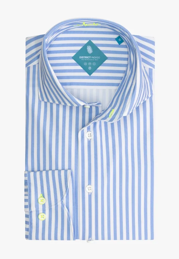District Indigo Overhemd Performance Streep Blauw 38