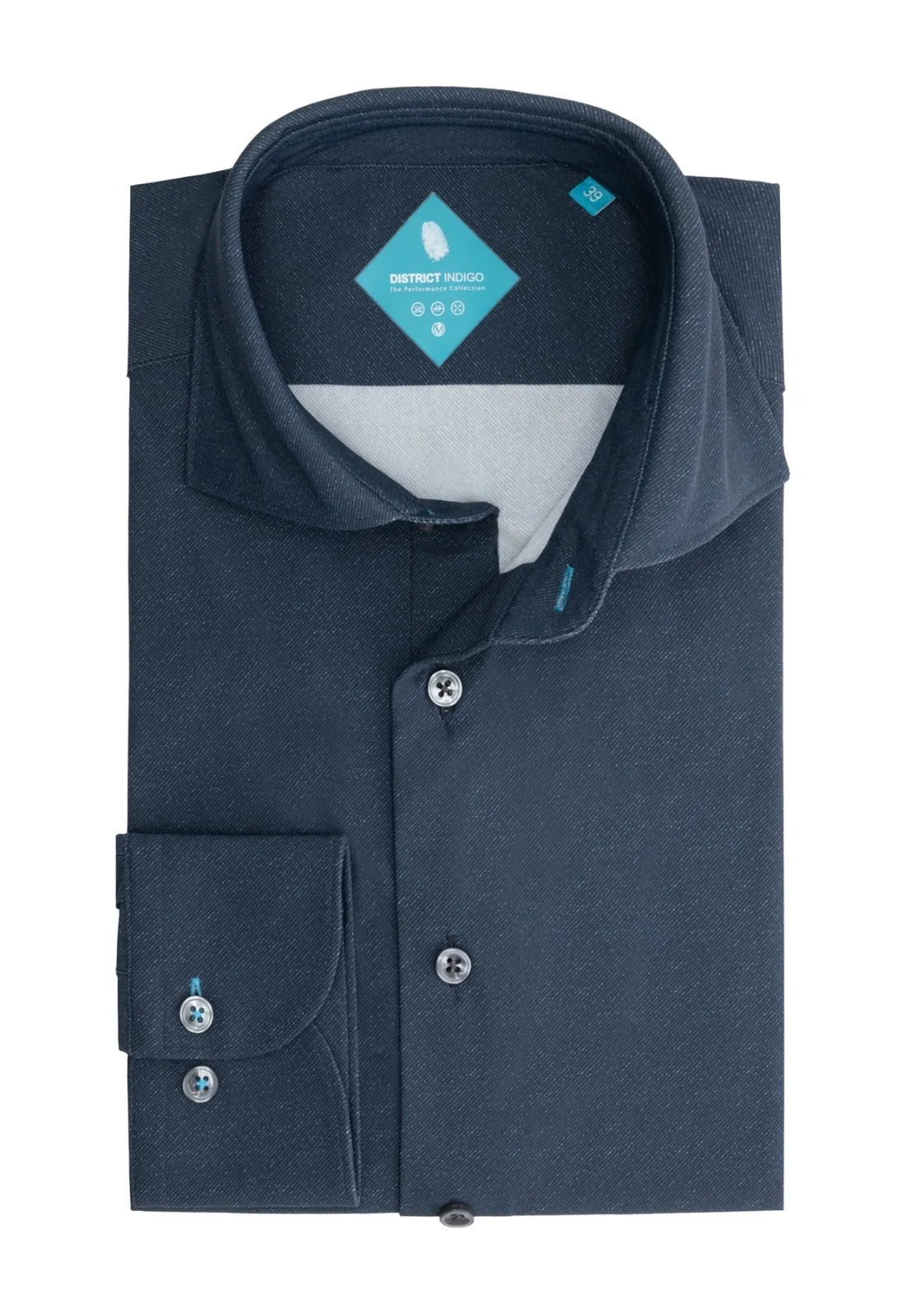 District Indigo Overhemd Performance Twill Navy Blauw 40
