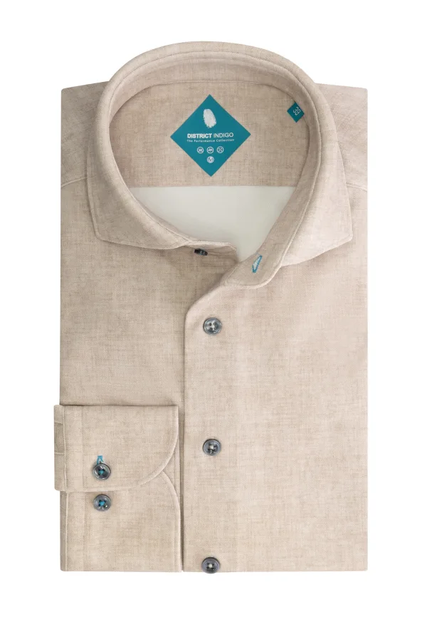 District Indigo Overhemd Pique Performance Mel. Beige 39