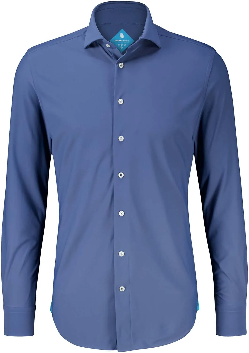 Het Overhemd Travel Pique van District Indigo is een stijlvol business overhemd met een spreidkraag en lange mouwen. Het effen patroon, afgewerkt met manchetten met knopen, maakt het een veelzijdige keuze voor elke gelegenheid. Perfect voor de moderne garderobe.